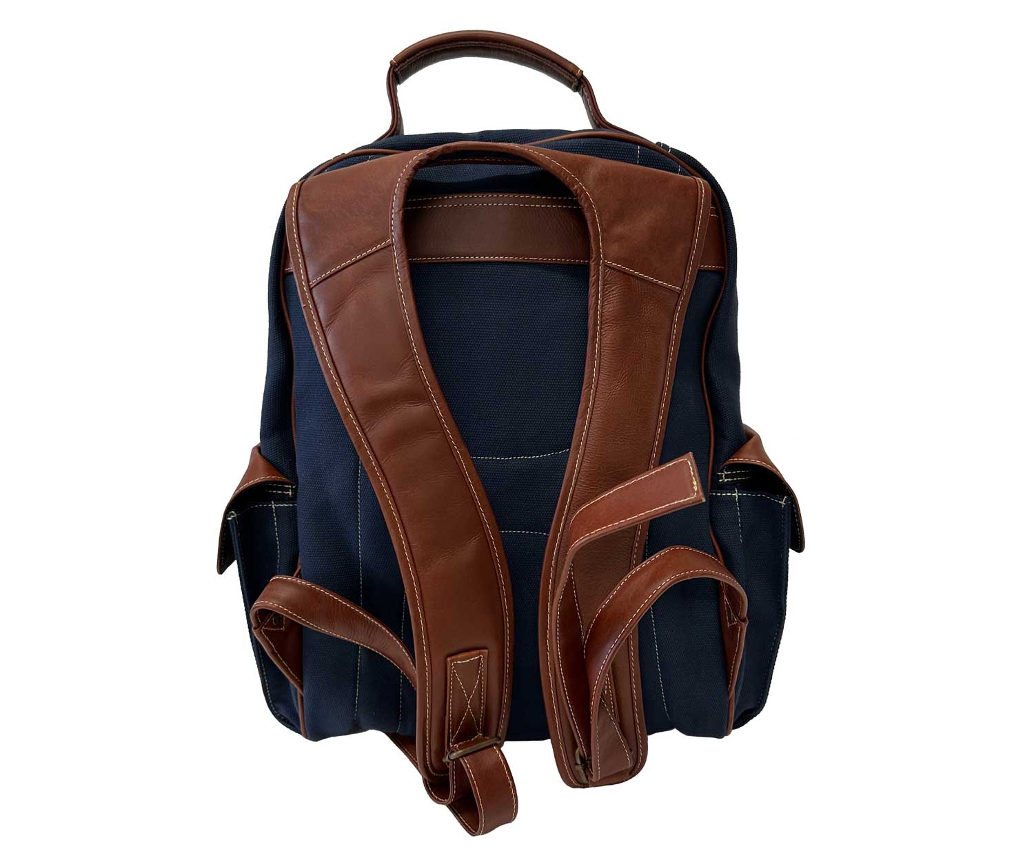 This backpack is the perfect combination of style and functionality, offering a spacious and compartmentalized design to accommodate all your essentials. The oversized bag features top-grain leather and a durable blue canvas exterior that exudes a classic and sophisticated appeal.