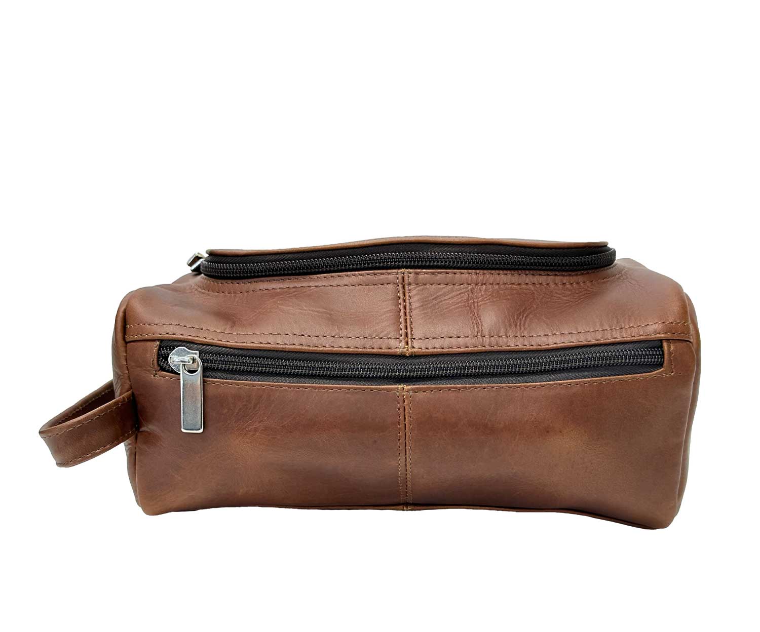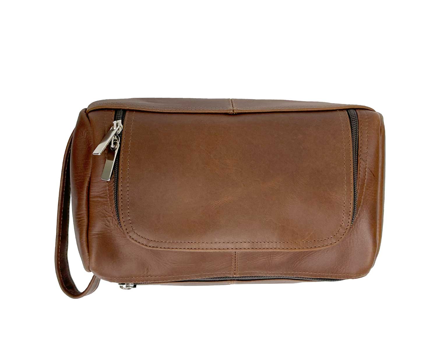Traditionally styled Hampton leather shave kit with handle for easy carrying when you are at your favorite tennis or golf club. A c shaped zipper on top provides access to the main compartment, perfect for holding deodorant, toothpaste and shaving necessities. A front zippered pocket allows your toothbrush to have its own space.