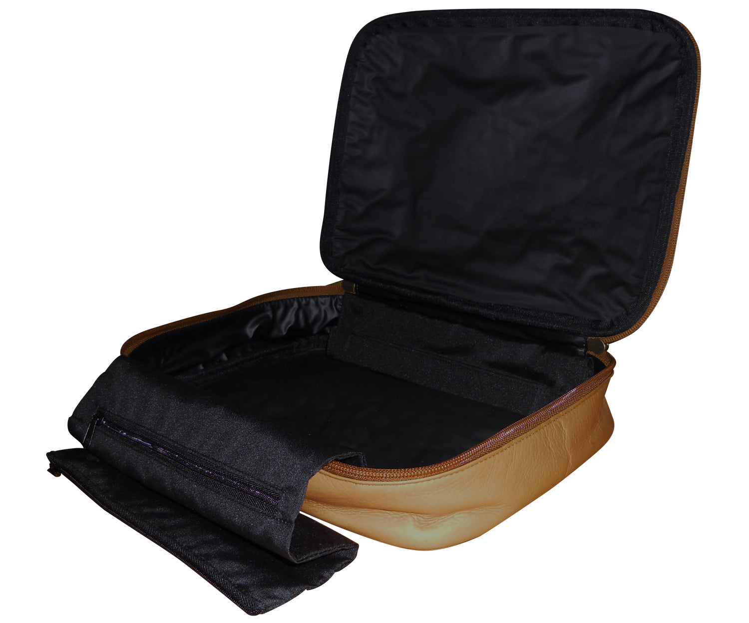 A C-Shaped zipper top opens to give you full view of all items in the main compartment of this top-grain leather toiletries case, making it near impossible to forget anything you need when loading. Two separate zipper pockets are perfect for a razor and q tips. And a separate removable pocket for your toothbrush insures it will never have the taste of deodorant or cologne. Sized similar to a folded polo shirt helps make this an easy item for packing.
