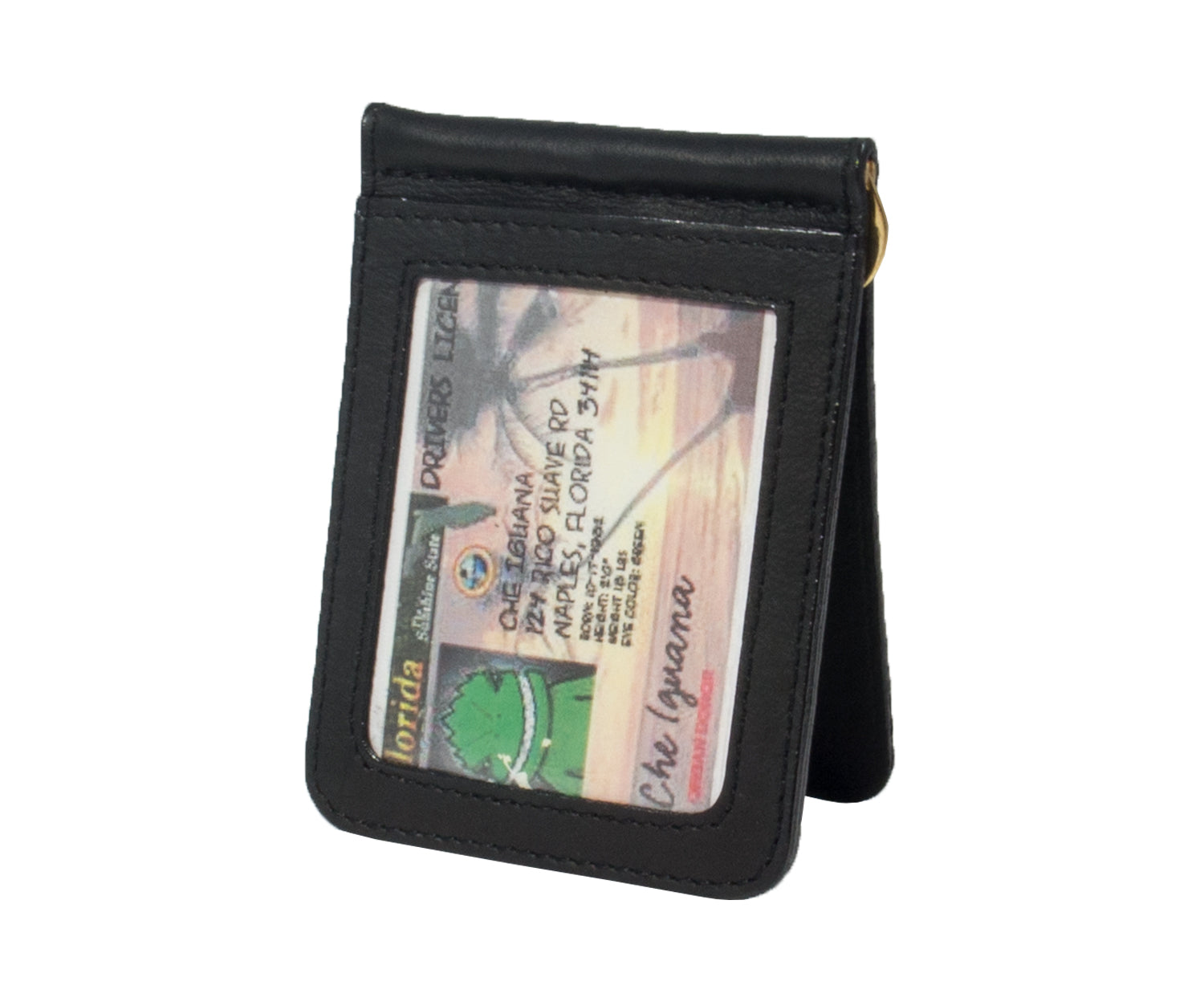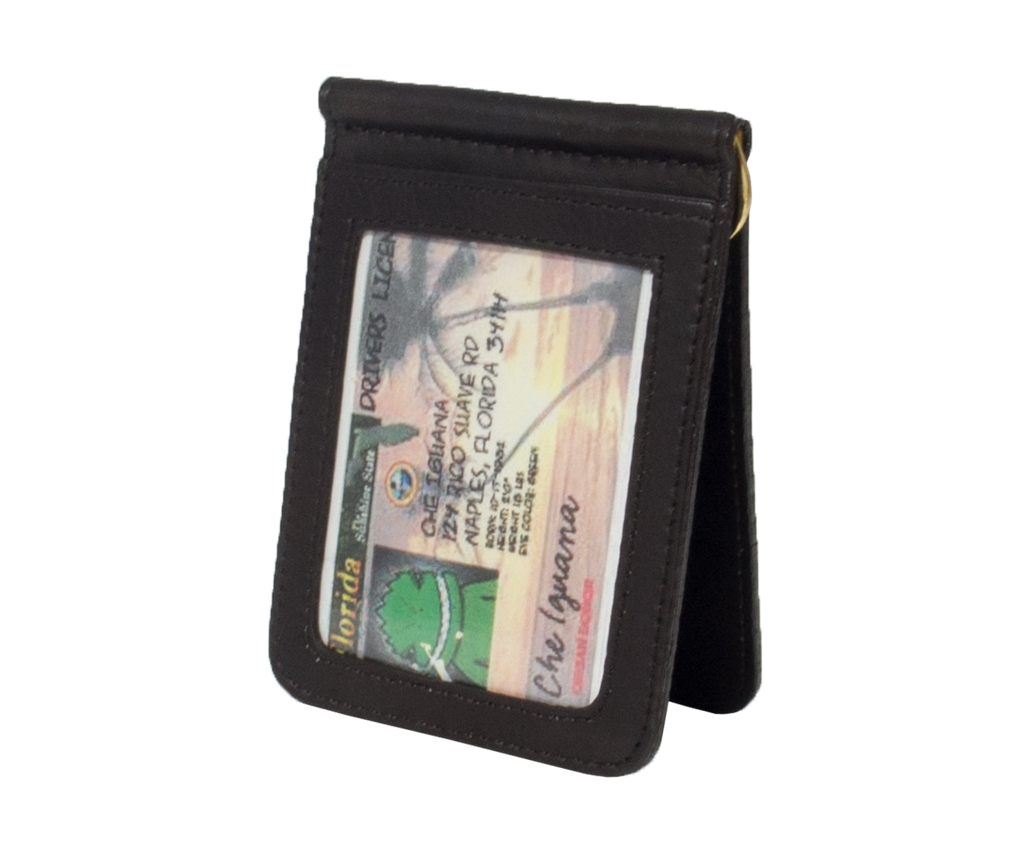 Top-grain leather billfold with exterior pockets on each side that are perfect for holding credit cards, license and a handful of business cards.