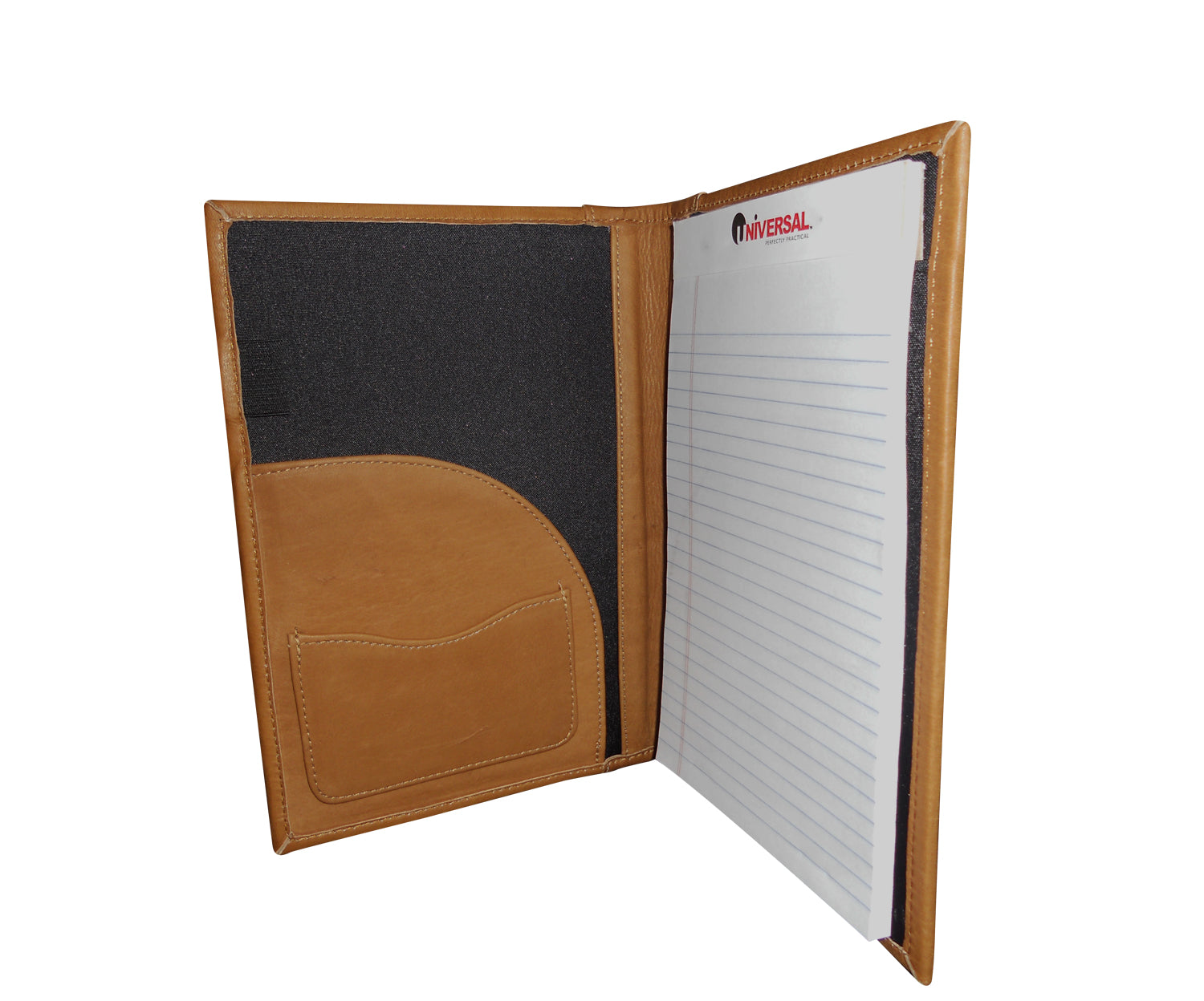 Holds a 5″ x 8″ pad, perfect for taking some quick notes. Business card holder and leather pocket for holding loose documents. Keep it on the nightstand to jot down that next great idea that wakes you in the middle of the night.