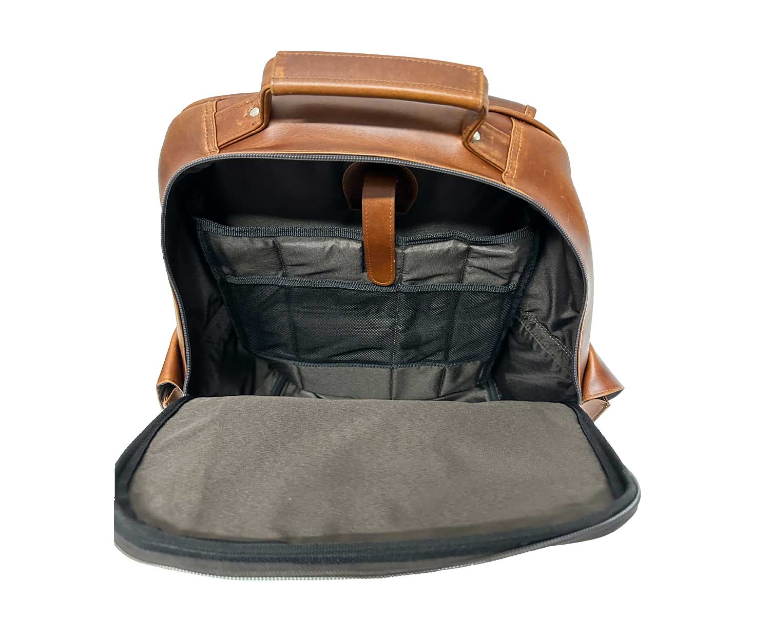 The backpack we have here is not only stylish but also spacious, with an oversized design that allows you to carry all your essentials with ease. Made from high-quality Hampton leather, it is both durable and luxurious. The main compartment of the backpack is designed to accommodate a laptop securely, with a separate padded section that provides extra protection.