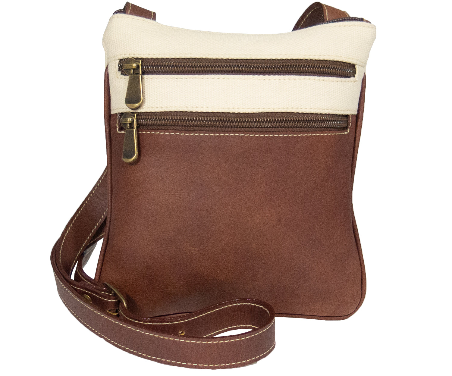 Travel in style with this exquisite top-grain leather crossbody that has been elegantly crafted with a rugged creme canvas design, perfect for those who seek functionality and durability without compromising on style. The bag comes equipped with two exterior zippers that are perfectly capable of holding all your essential everyday necessities while on the go.