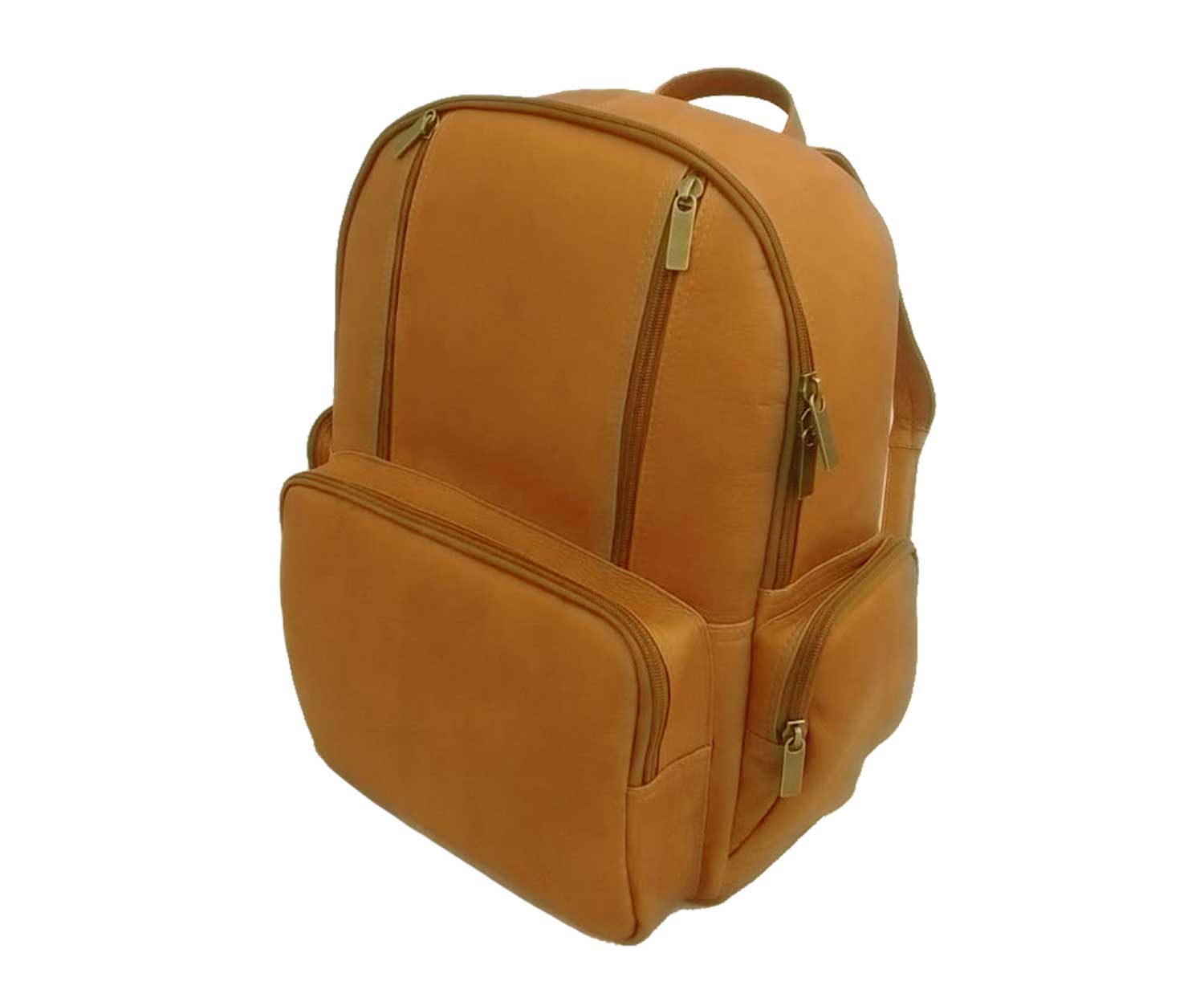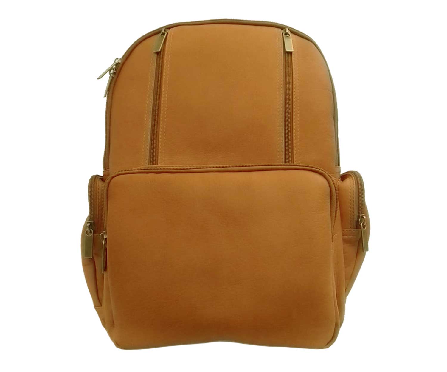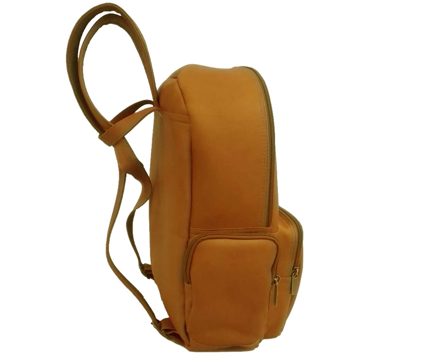 Top-grain leather flexible bag at home on campus or in the city. Top zip opening main compartment opens wide for easy access. An interior zippered pocket is ideal for keeping small valuables secure. In addition, there are two gusseted side pockets with zippers ready to accept your cell phone. Two more front zippered pockets hold nutrition bars or other snacks. Adjustable, padded shoulder straps.