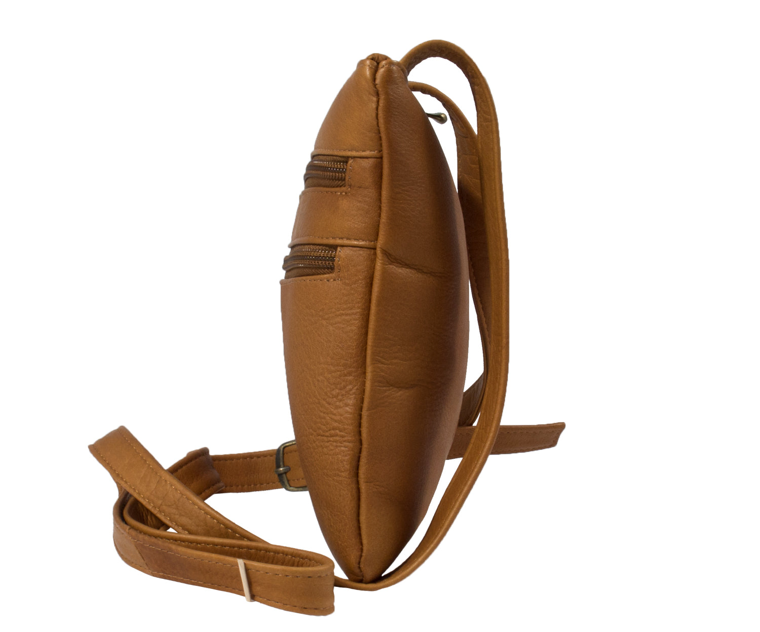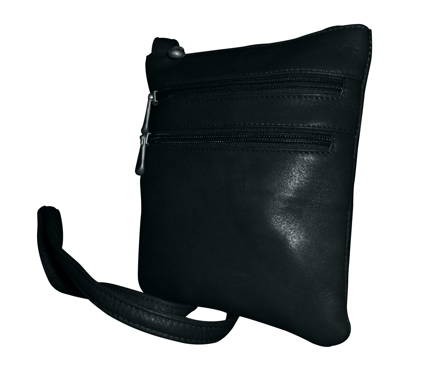 Two exterior zippers perfectly capable of holding your everyday on the go necessitates. Also equipped with a stylish leather shoulder strap.